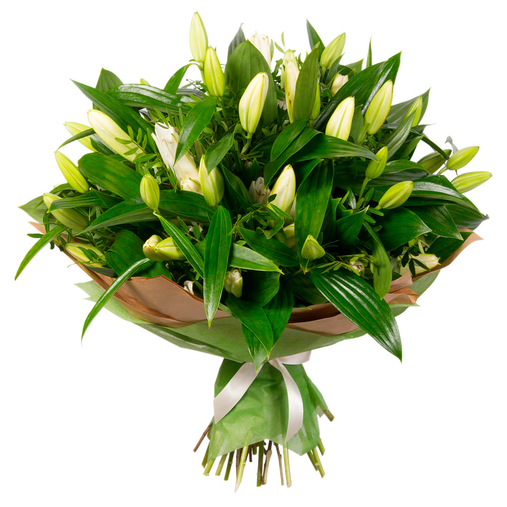 На фото представлен образец. Объем букета зависит от выбранного вами размера. Точное количество цветов и цветовую гамму вы можете уточнить у менеджера по телефону.