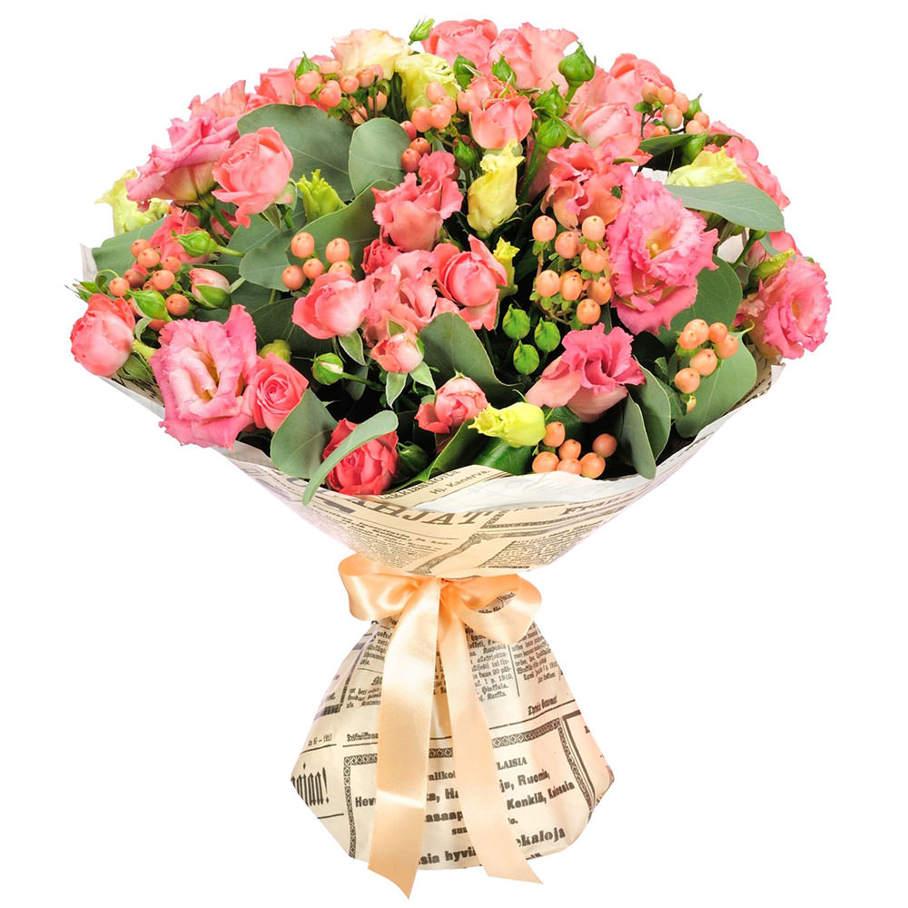 На фото представлен образец. Объем букета зависит от выбранного вами размера. Точное количество цветов и цветовую гамму вы можете уточнить у менеджера по телефону.