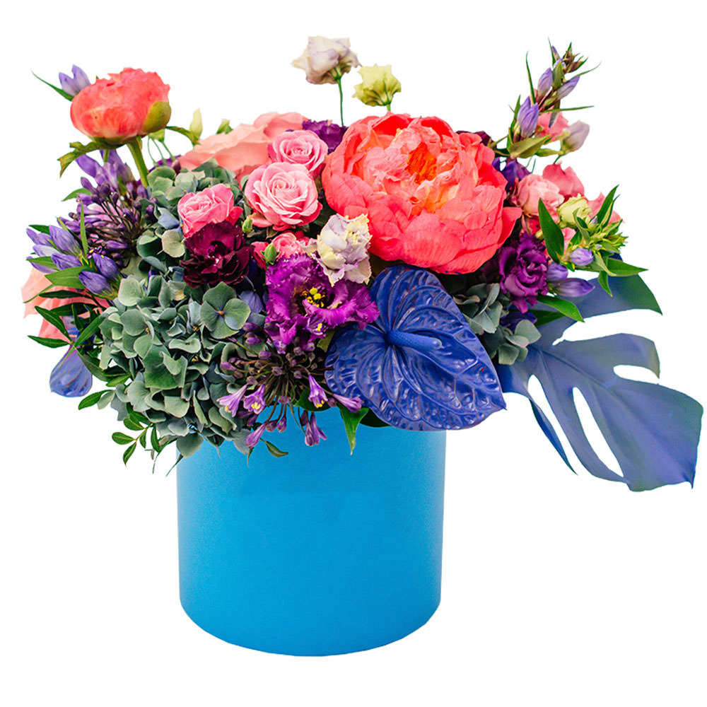 На фото представлен образец. Объем коробки зависит от выбранного вами размера. Точное количество цветов и цветовую гамму вы можете уточнить у менеджера по телефону.